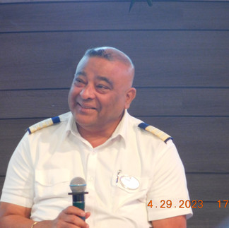 (Chief Engineer Ricardo, [l], Chief Hospitality Officer Sanjay, [c], Captain Espin [r])