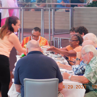 Back in the room we reviewed the information that had been distributed about the upcoming customs and immigration processes we will undergo in two days. The Captain has been required to come into Hawaii a daily early, in order for U.S. officials to have time to interview and vet all of the passengers and crew. A bit much in my mind, but it’s what we all have to go through. This will be a final customs and immigration process for us for this trip, since when we leave Hawaii, we will be on U.S. soil headed for a U.S. destination. When we land in Atlanta, we will experience the normal domestic flight arrival and luggage processes.