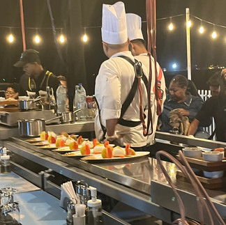 3rd row: Boris (from Cameroon) preparing to serve Patrise's red snapper, a flag in the mall (one my favorite sayings from Lord of the Rings), and the Souk Madinat Jumeirah.