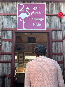 Most of the day was good, but there was one trauma-inducing moment and one "I-can't- believe-I've-actually-done this" moment, and not in a good way. Details to come, but first, Akass picked us up at the hotel at the agreed time of 10am. He began the tour driving through the Al Meydan City area is a high end commercial shopping and residential district, known primarily for its internationally famous horse racing track. We did a drive through, as Akass pointed out some features of the area and answered our many questions. He continued the drive until we reached the Ras Al Kohr animal conservation area, which is specifically a bird sanctuary inhabited by a large flock of flamingos. The flamingos only come here in the winter season, so we were fortunate to be in Dubai during the time of their arrival and seasonal stay over. Patrise helped Akass find parking, while I proceeded to the wildlife refuge to grab a few pictures: After parking, Patrise joined me in the refuge and we stood in the "hiding box", observing the flamingos without disturbing them. It was a peaceful moment, seeing and being reminded of the beauty of nature.)