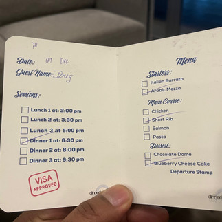 2nd row: Souk Madinat Jumeirah (the upscale mall where we had lunch), Taverna menu (the restaurant where we ate lunch) and Patrise at Taverna;