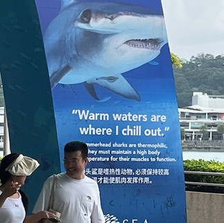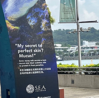 This is a day to do as we please in Singapore. No officially organized activities. Therefore, after breakfast, Patrise and I headed out to the S.E.A. Aquarium. (If you are curious and want to know, the S.E.A. is an acronym for Southeast Asia.) We had a pleasant taxi ride over to the aquarium and a great conversation with our taxi driver. We asked her if she was from Singapore. She replied "yes", then informed us that only Singaporean citizens are allowed to drive taxis. This reinforces several things Jeremy told us yesterday, which indicates the Singapore regulates so much about its economy, including its labor markets, in ways to favor the country and its citizens. Since 40% of the workers are not citizens, I suppose this is a way to guarantee maximum employment.