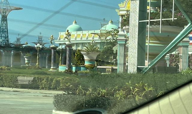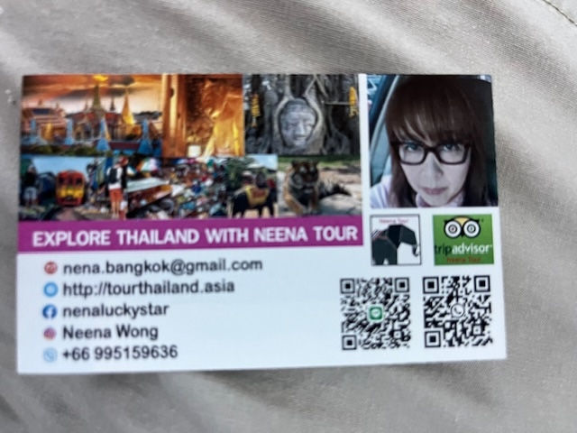 Easier said than done. Turns out the nearest city was called Pattaya ("Pah-TEE-yaah") and it was one way, about an hour and one-half. There were several preset rides -- eight hours sightseeing tour to Pattaya, round trip ride to see the Temple of Truth, and others -- but it was appearing to be impossible to explain that we only wanted to go on a three-hour excursion, we didn't want to walk around a lot, and we needed someone to speak passable English. After several minutes of trying to negotiate this, a woman stepped up and said she would drive us, Her name was Neena, and clearly her use of and understanding of English was much better than that of the other taxis drivers. So off we went with Neena.